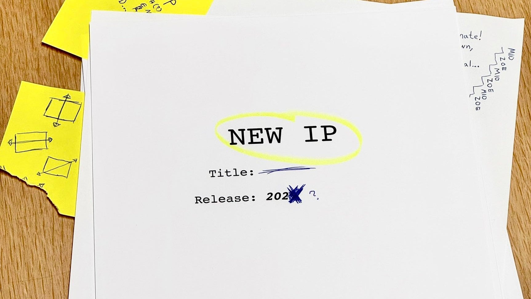 Hazelight, best known for its co-op platformer It Takes Two, shared a mysterious image earlier today, showing a stack of papers and a collection of post-it notes. The top paper reads, “New IP”, which has been circled in yellow highlighter.